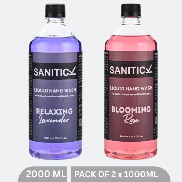 Indulge in elegance and calm with Sanitick Blooming Rose & Relaxing Lavender 1L Refill Combo Pack
