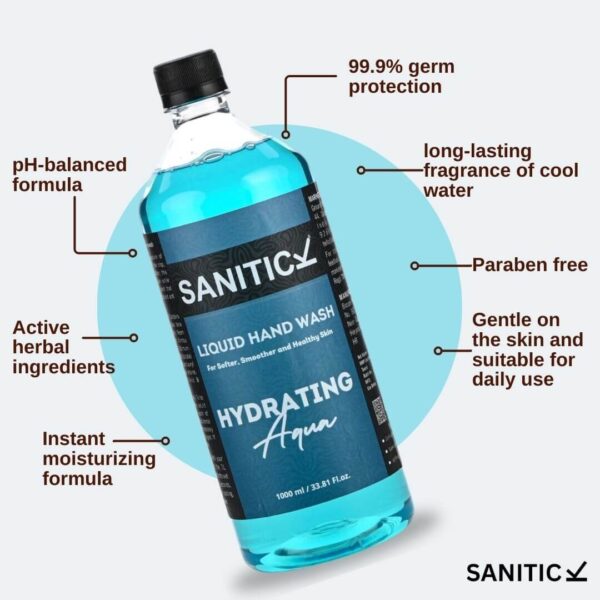 Sanitick Liquid Handwash Refill Pack | Hydrating Aqua-1 Litre