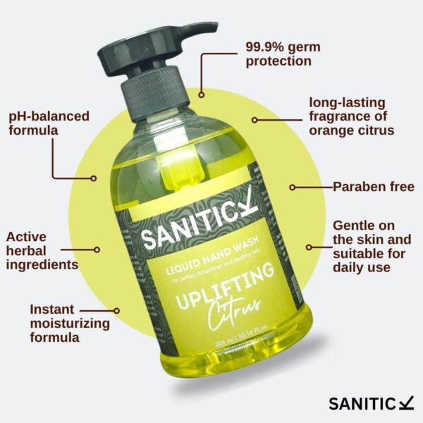 Revitalize your senses and enjoy an energizing handwashing experience with Sanitick Uplifting Citrus Handwash