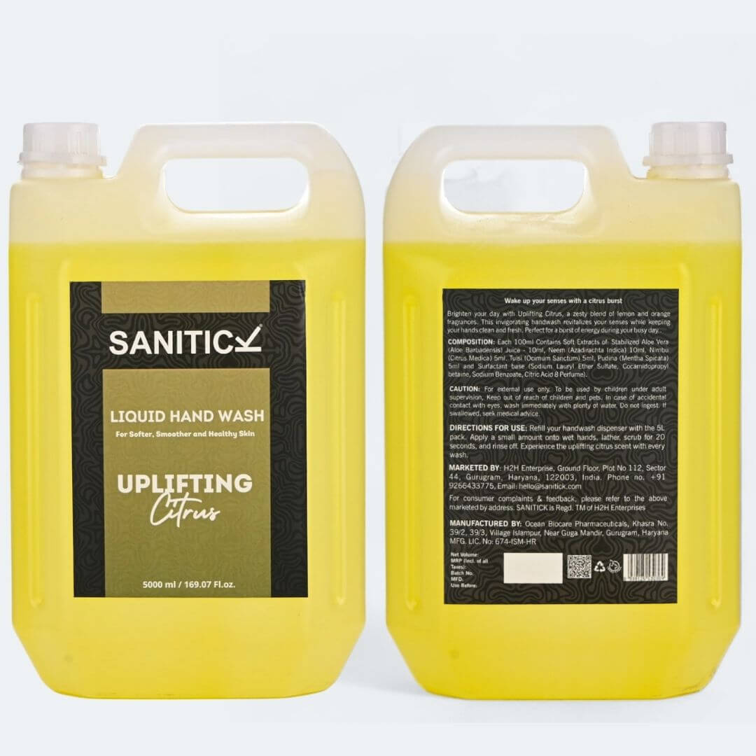 Sanitick Uplifting Citrus 20L Handwash Refill Pack combines freshness and hygiene in a bulk size, perfect for high-usage areas like offices, restaurants, and large families